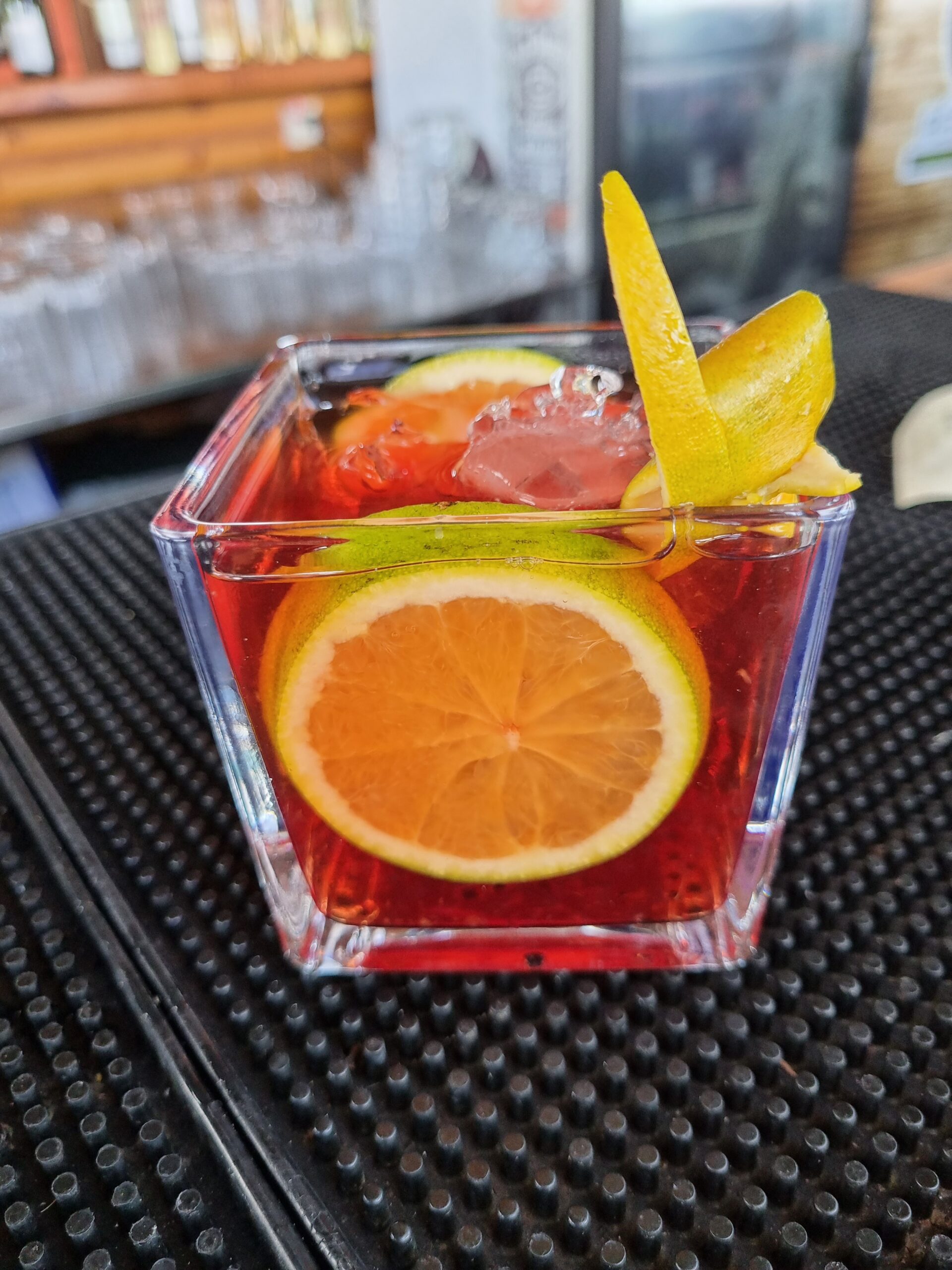 Drink da casa preparado com Gin, morango, laranja e açaí.