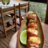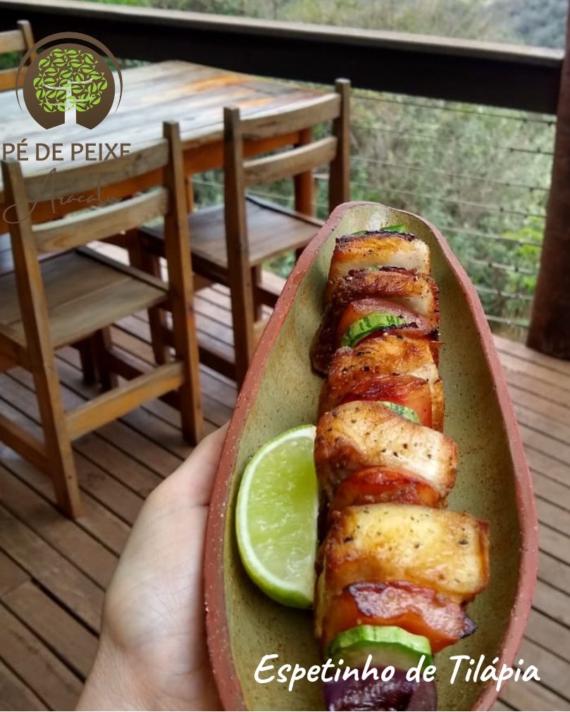Cubos de tilápia intercalados com bacon, tomate, abobrinha, cebola roxa e pimentão, regados com manteiga de garrafa. | R$25,00 | |