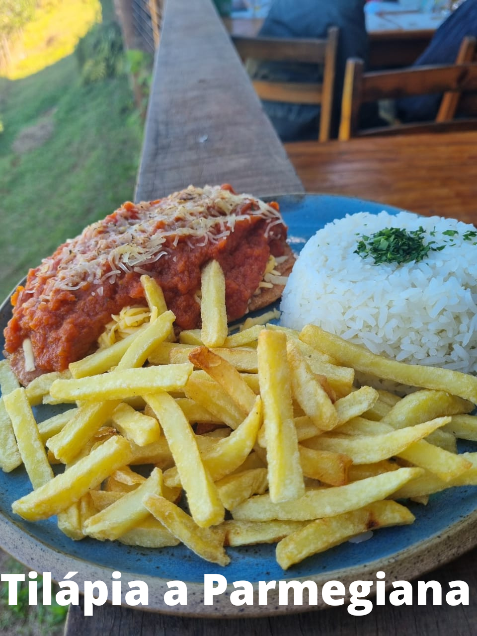 Lombo da tilápia empanado coberto com muçarela, molho de tomate do chef e queijo parmesão, acompanha arroz e batata palito. | R$64,00 | |