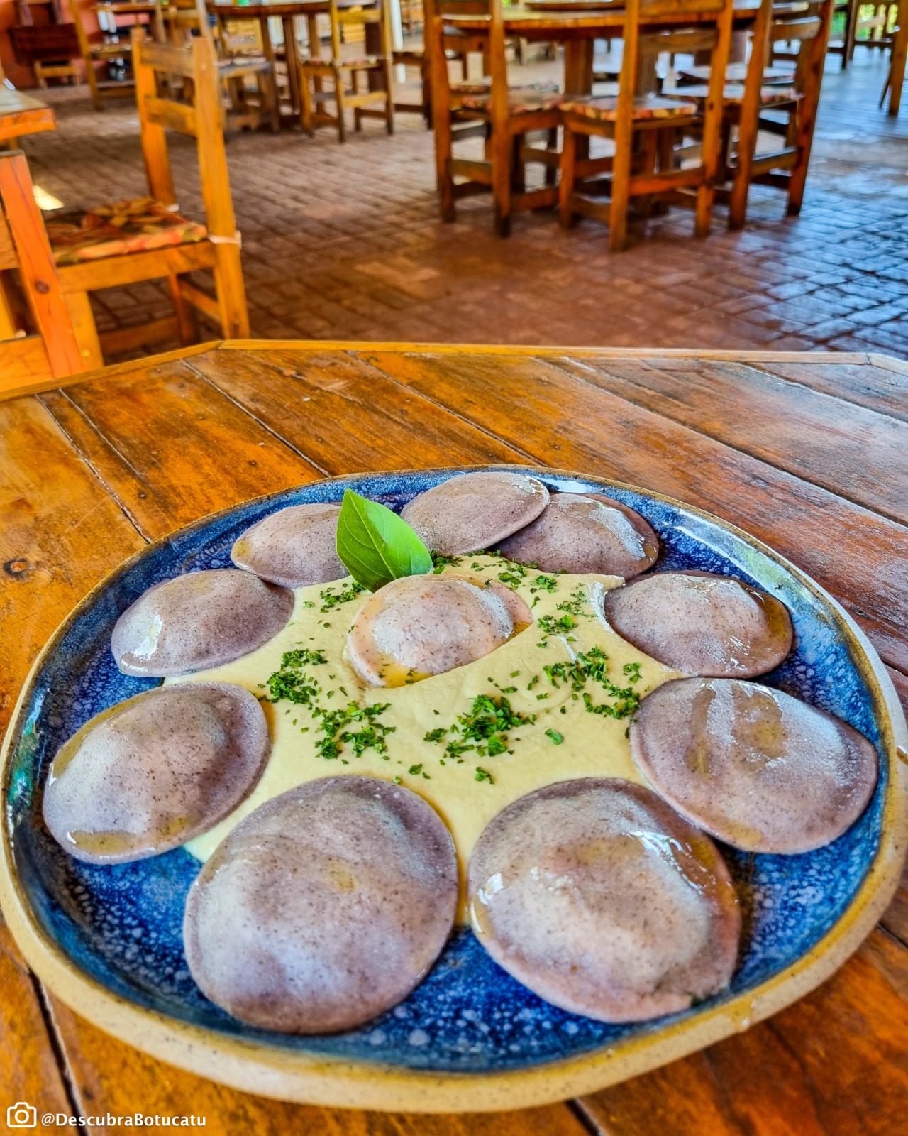 Massa de arroz com recheio de ora pro nobis, espinafre e batata, coberta com molho branco, castanha de caju e espinafre. Não contem glúten. Serve 1 pessoa. | R$69,00 | |