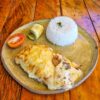 Tilápia dessosada grelhada em crosta de farofa temperada com requeijão e vinagrete. Acompanhada de arroz e banana da terra frita. Serve 2 pessoas. | R$168,00 | |