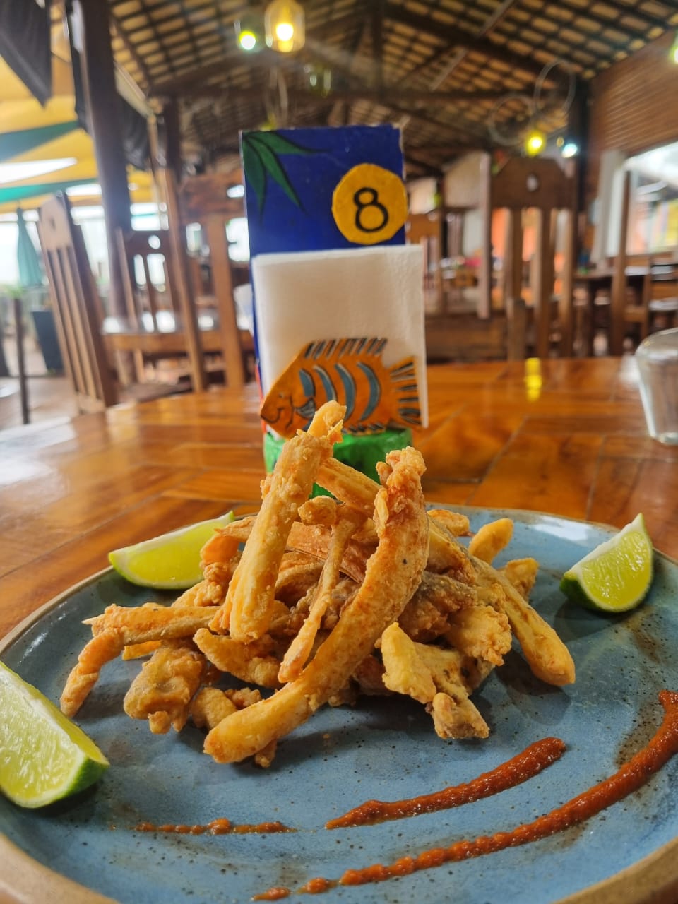Lambari no fubá, isca de tilápia e camarão empanado. | R$85,00 | |