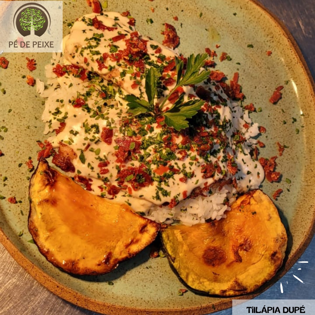 Filé de tilápia com tempero especial grelhado, servido com molho branco, crispy de copa, salsinha, arroz branco e abóbora cabotia. | R$68,00 | |