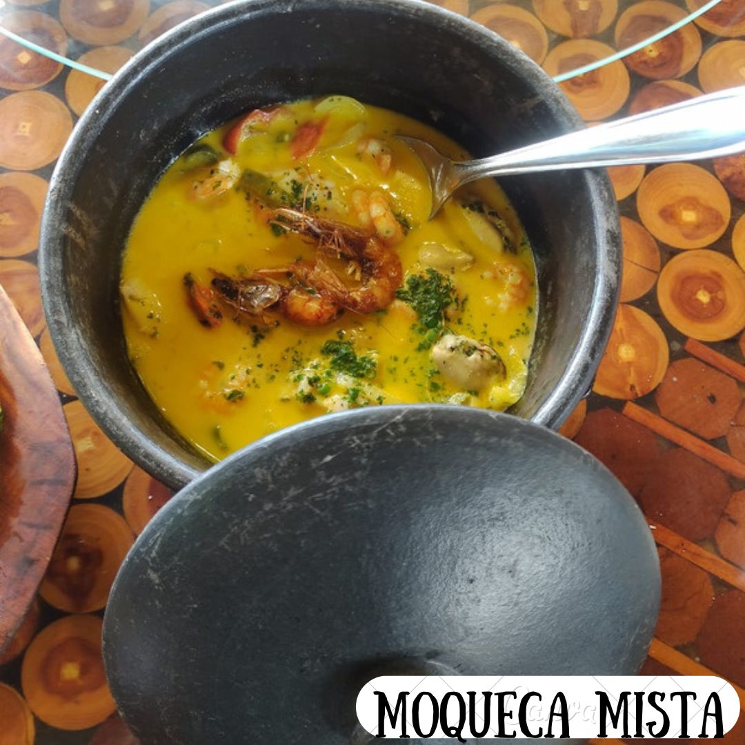 Moqueca com pintado, camarão e mexilhões, ao molho de pimentão, leite de coco, tomate e cebola. Acompanha arroz. Serve 2 pessoas. | R$213,00 | |