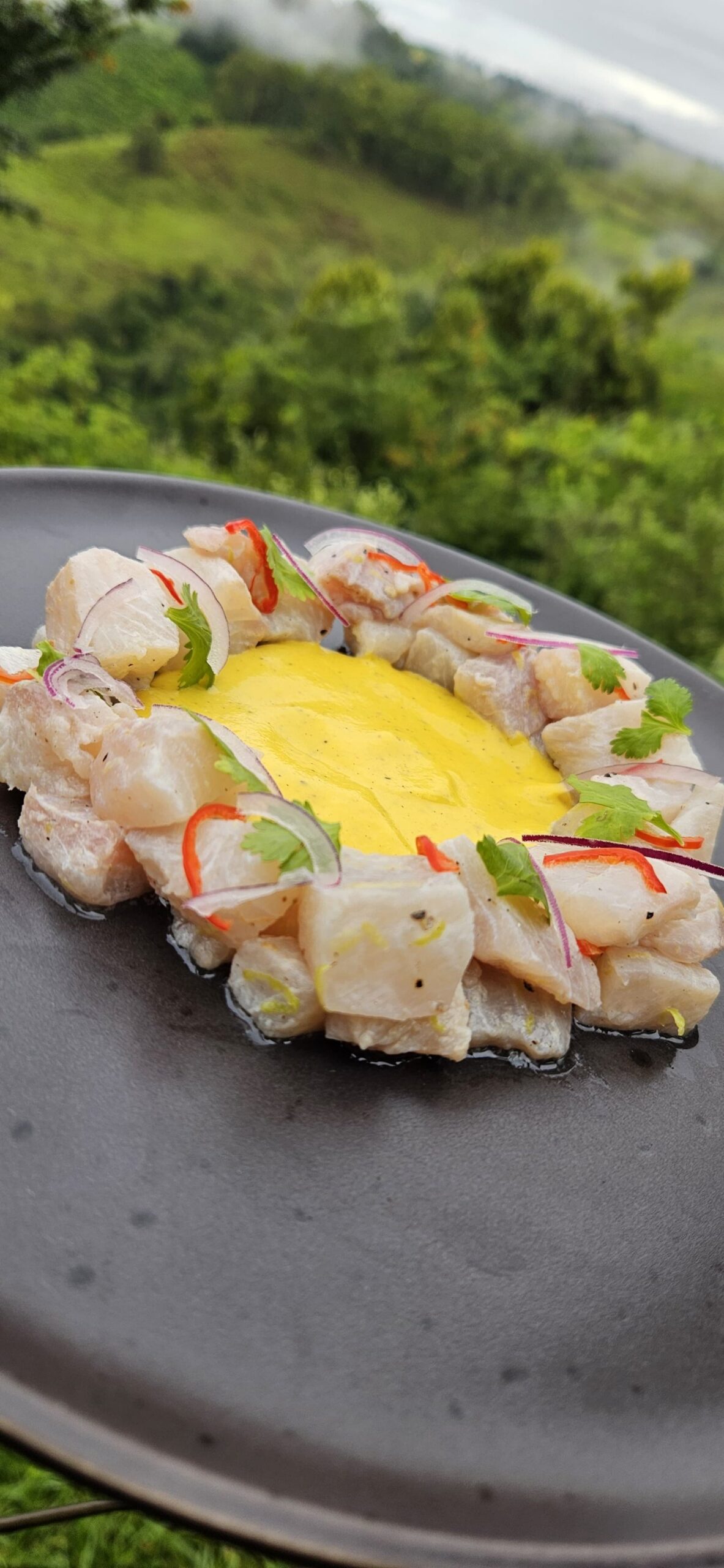 Ceviche de tilápia em cubos temperados com limão siciliano e suas raspas, sal, tiras de pimenta dedo de moça, cebola roxa, folhas de coentro, servidos com um creme incrível de pimentão amarelo á moda peruana. Serve 1 pessoa. | R$48,00 |